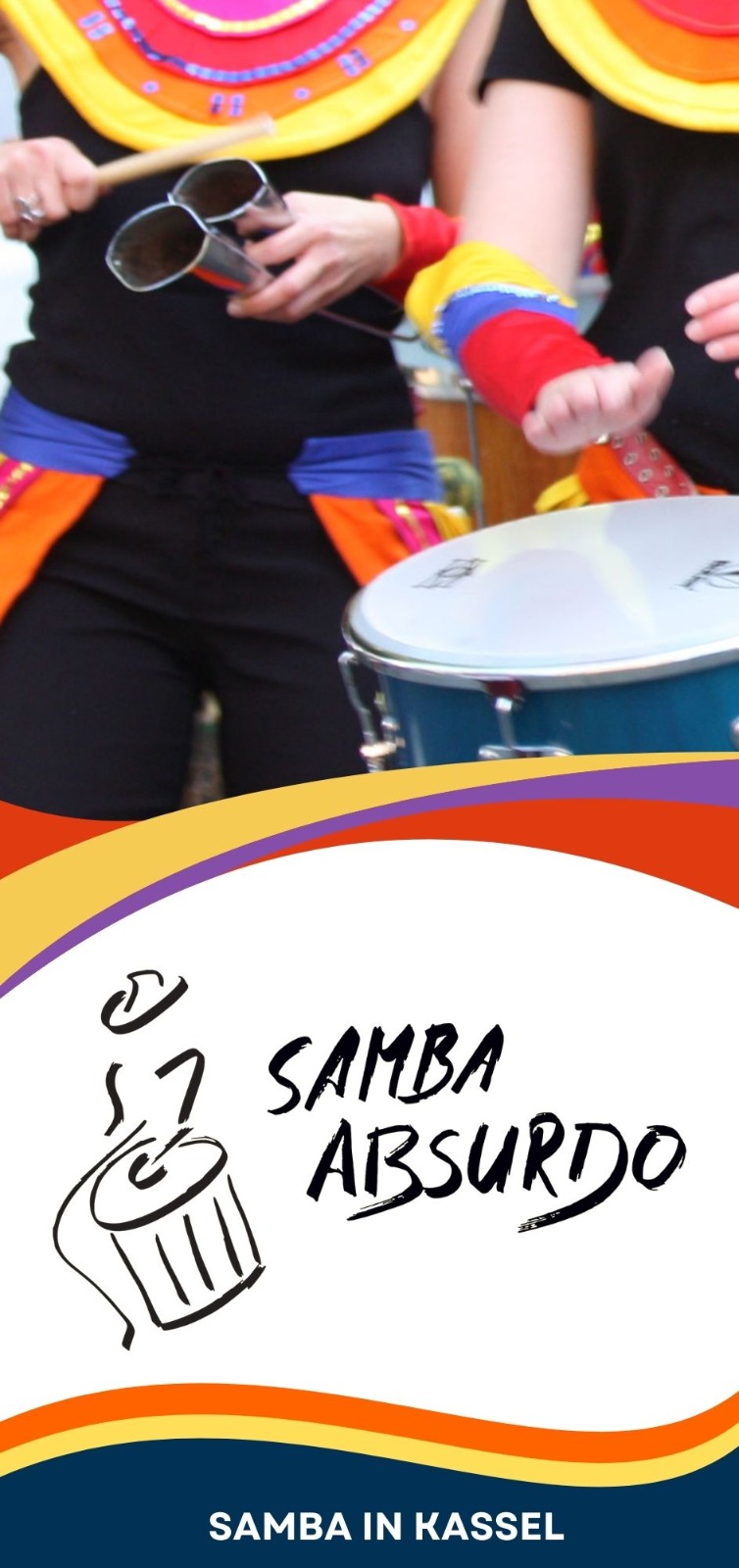 Samba Absurdo ist ein etwa fünfzehnköpfiges Percussions-Ensemble aus Kassel, das mittlerweile seit Anfang der 1990er Jahren besteht und mit Begeisterung mitreißenden Rhythmen brasilianischer Percussions-Musik präsentiert. Das Repertoire umfasst natürlich die Karnevalsrhythmen der Samba Batucada aus der Region von Rio de Janeiro und die afrobrasilianischen Grooves aus Salvador da Bahia, angelehnt an die Spielweise von Gruppen wie z. B. Timbalada und Olodum. Aber auch die aus dem Nordosten Brasiliens stammenden Rhythmen wie Maracatú und Baião und Modernes wie der Hip Hop und der Funk gehören zum Programm.
