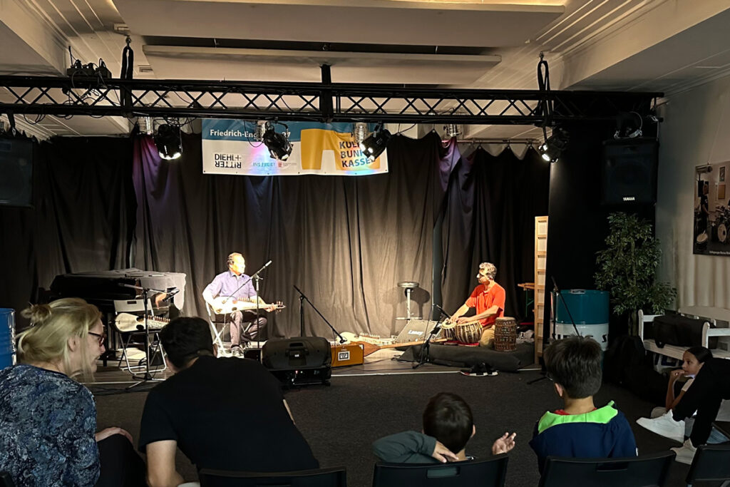 Für das vokale Moment des Abends sorgte der Sänger Matin Habibi (Baunatal), der auch ein kleines Harmonium spielte. Außerdem gab es gemeinsame Instrumentalstücke mit Klavier und Kontrabass.