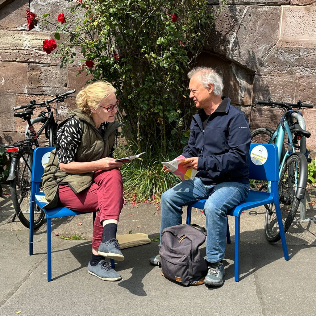 Am Freitag und am Samstag stehen die beiden Stühle vor dem Kulturbunker und bieten Platz für Zwiegespräche.