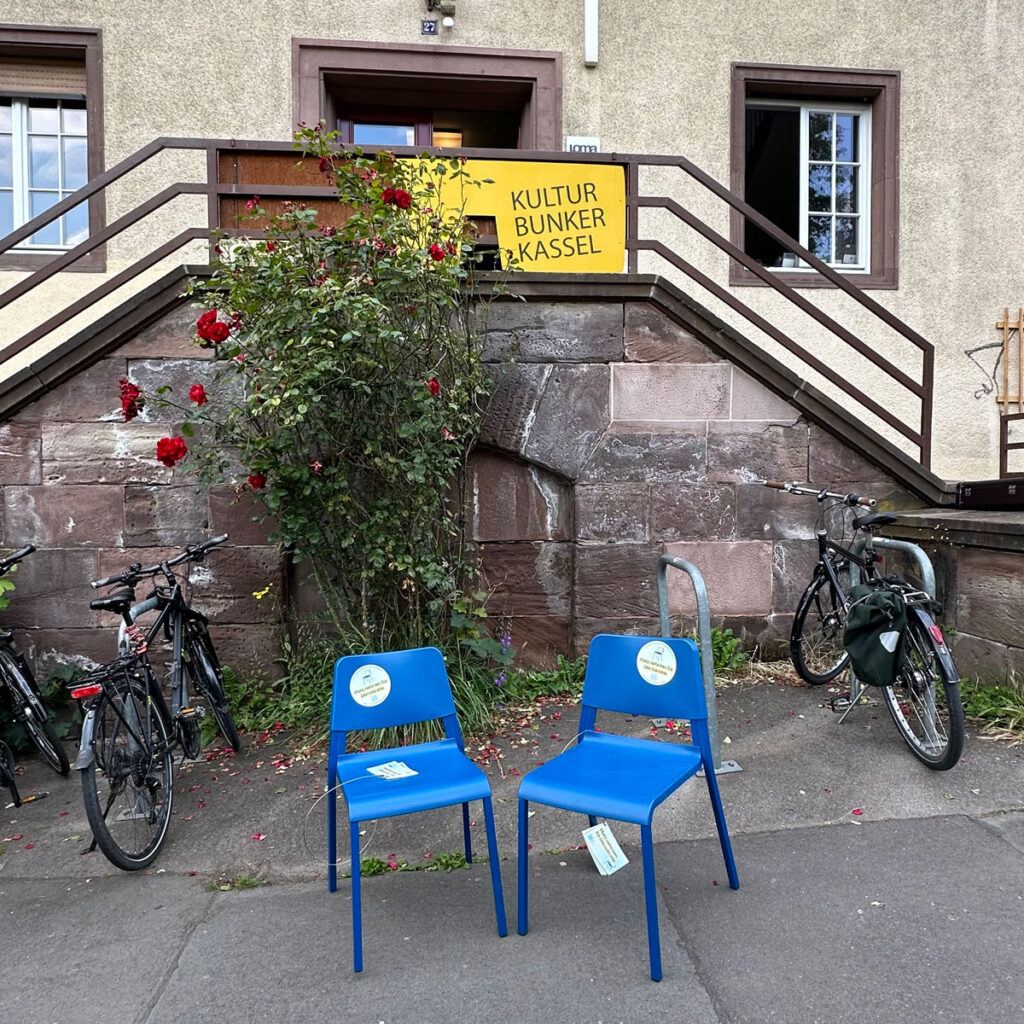 Am Freitag und Samstag vor der Wahl nehmen wir vor dem Kulturbunker Kassel Platz und diskutieren über die Demokratie, die EU, das Gendern und über alles, wohin uns unserer Assoziationen treiben. Wenn wir uns auf diese Stühle setzen, lassen wir uns auf unser Gegenüber ein, versuchen ihren oder seinen Standpunkt zu verstehen und nicht zu entwerten. Hier geht es um Respekt, Gleichberechtigung und Empathie.